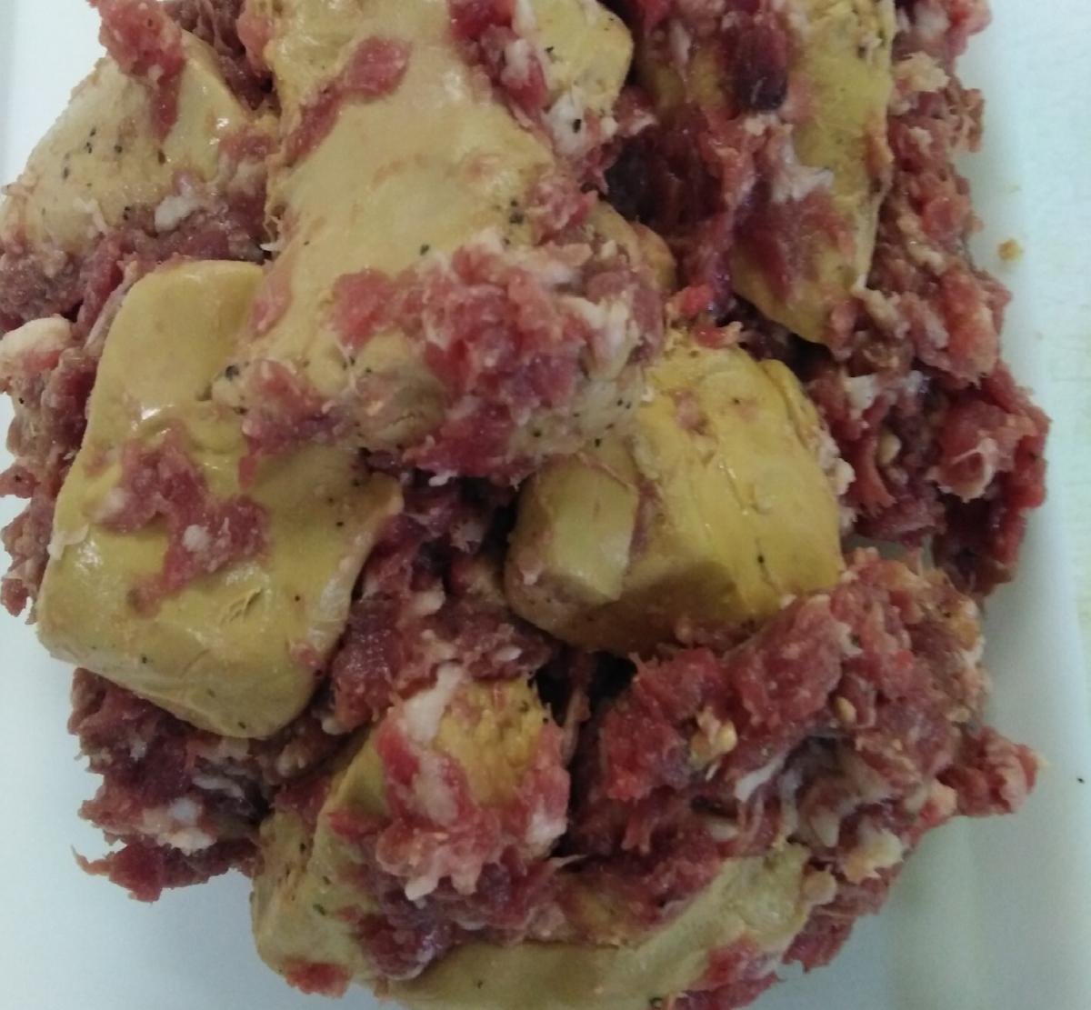 Maigre et poitrine de porc noir gascon, foie gras (25%) , oeufs, porto, sel, poivre Idéal pour farcir les chapons et volailles.